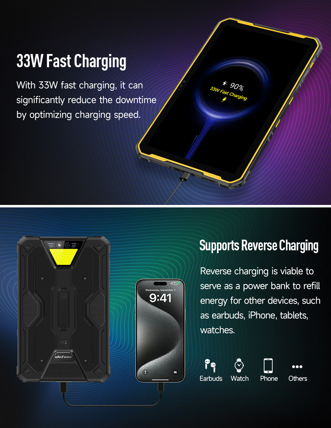 2. Power consumption data are from Ulefone lab, which will be varied by actual usage.
