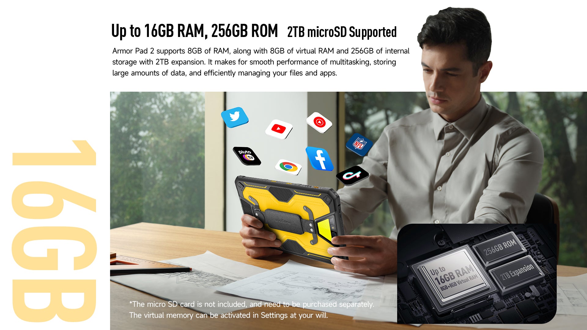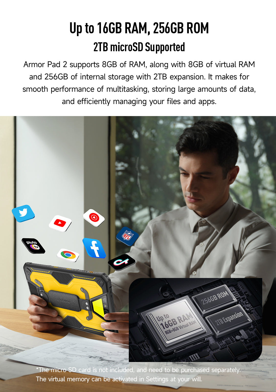 7. The actual available RAM and storage are less than the listed total capacity due to the occupied storage of the operating system and software pre-installed in the device. The virtual memory can be activated in Settings at your will.