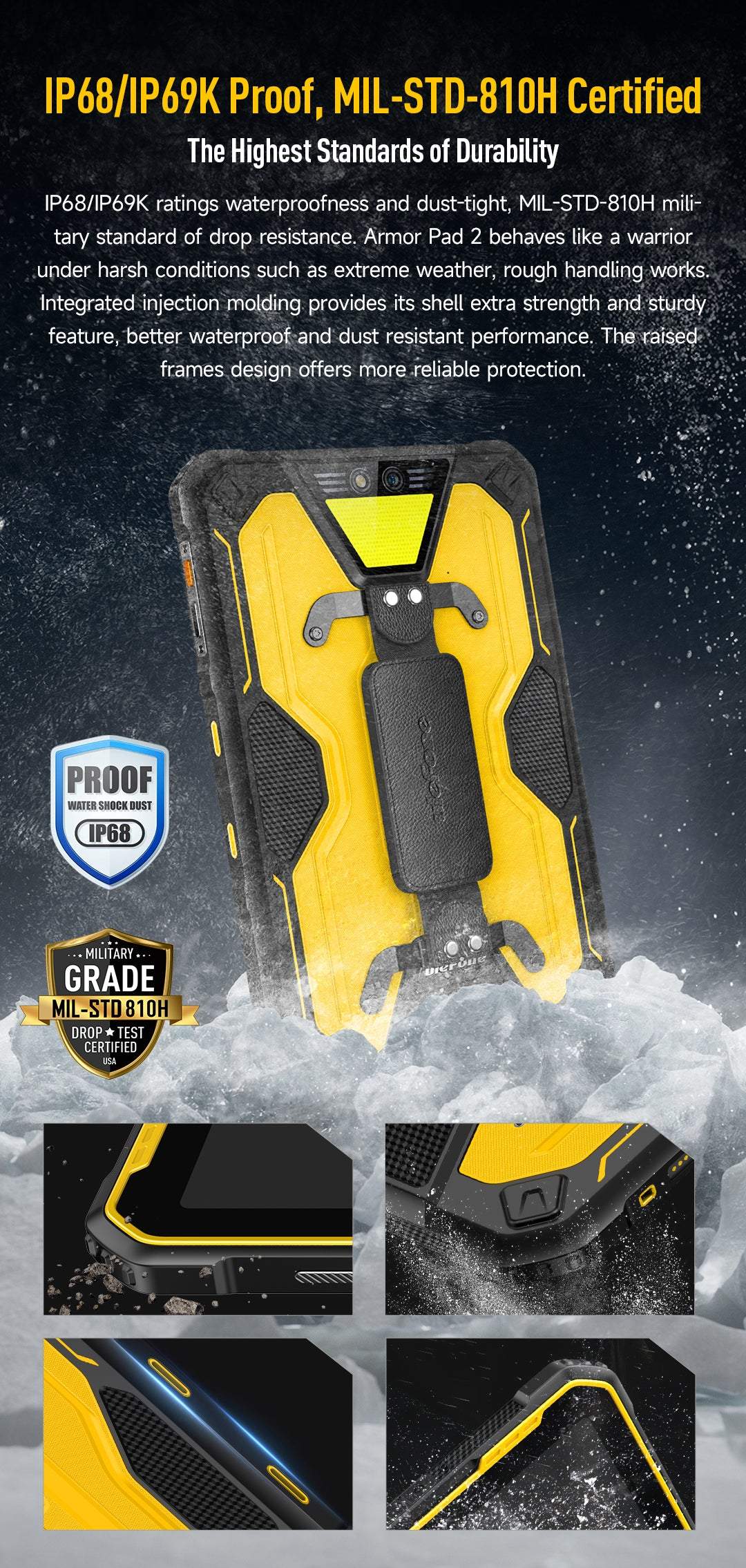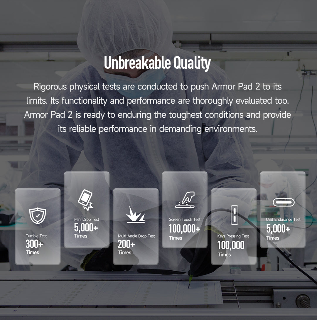 5. Armor Pad 2 has waterproof plugs for its charging port and audio jack, please tightly put the plugs into the holes before you put an Armor Pad 2 into water.