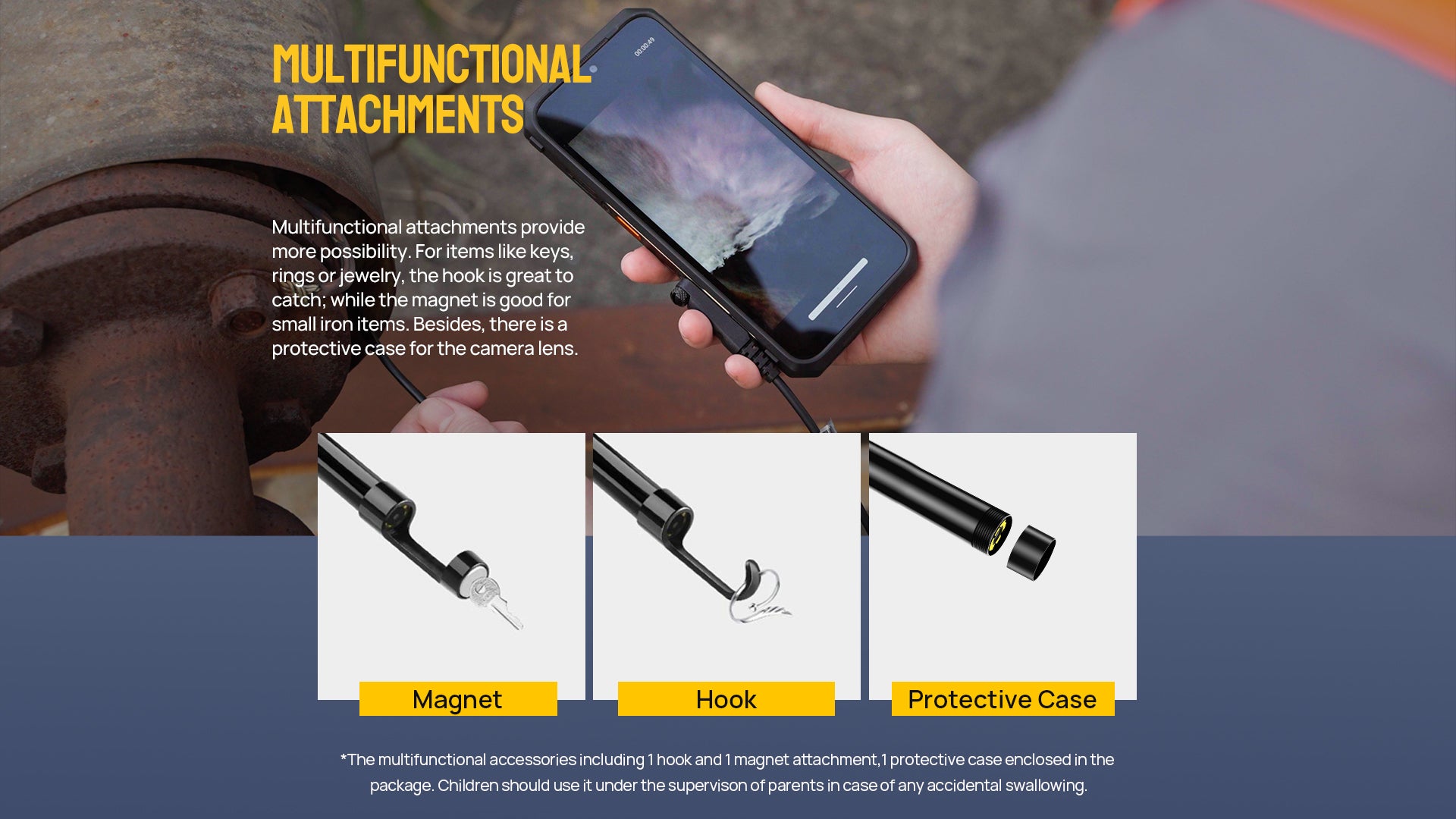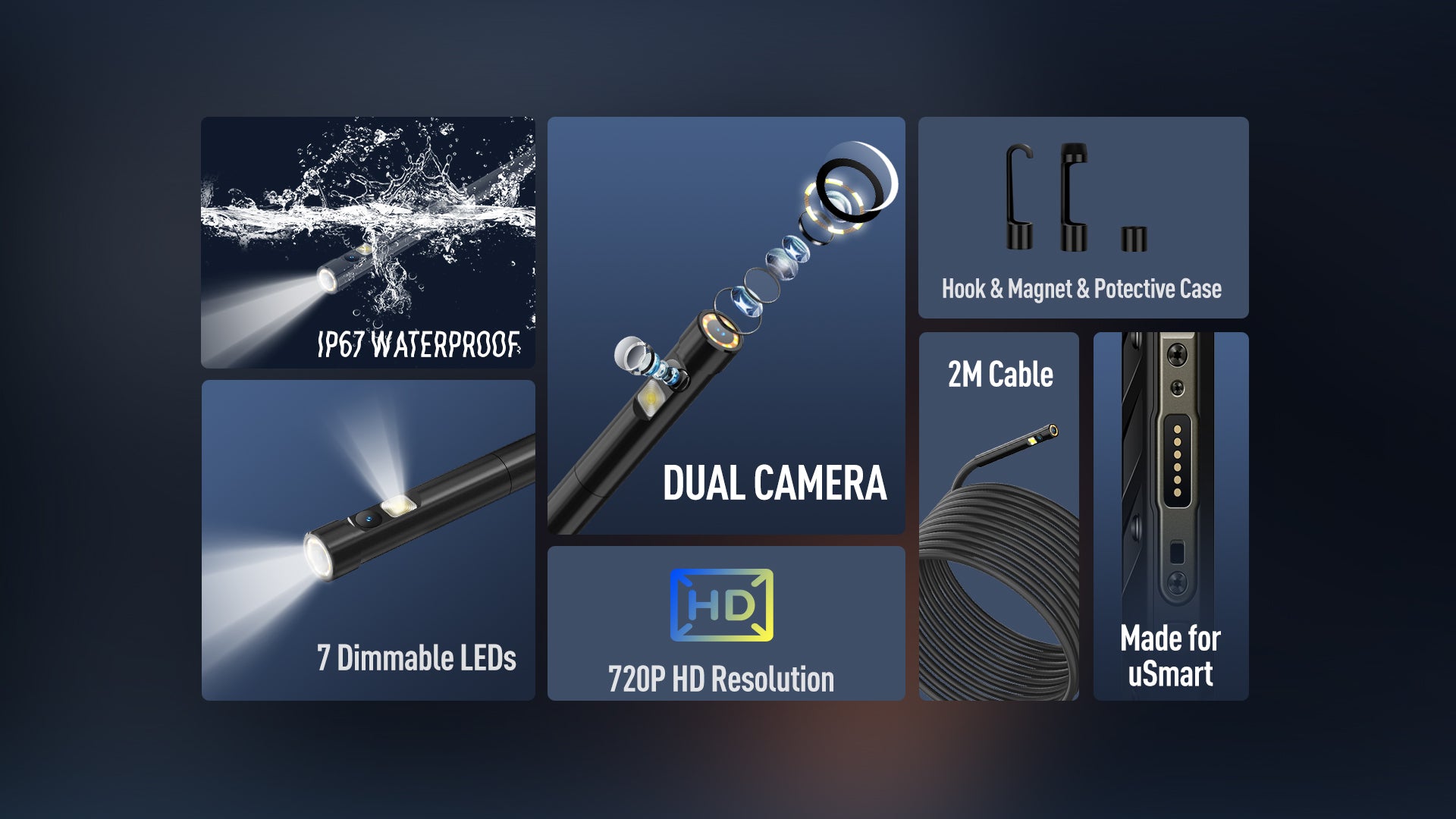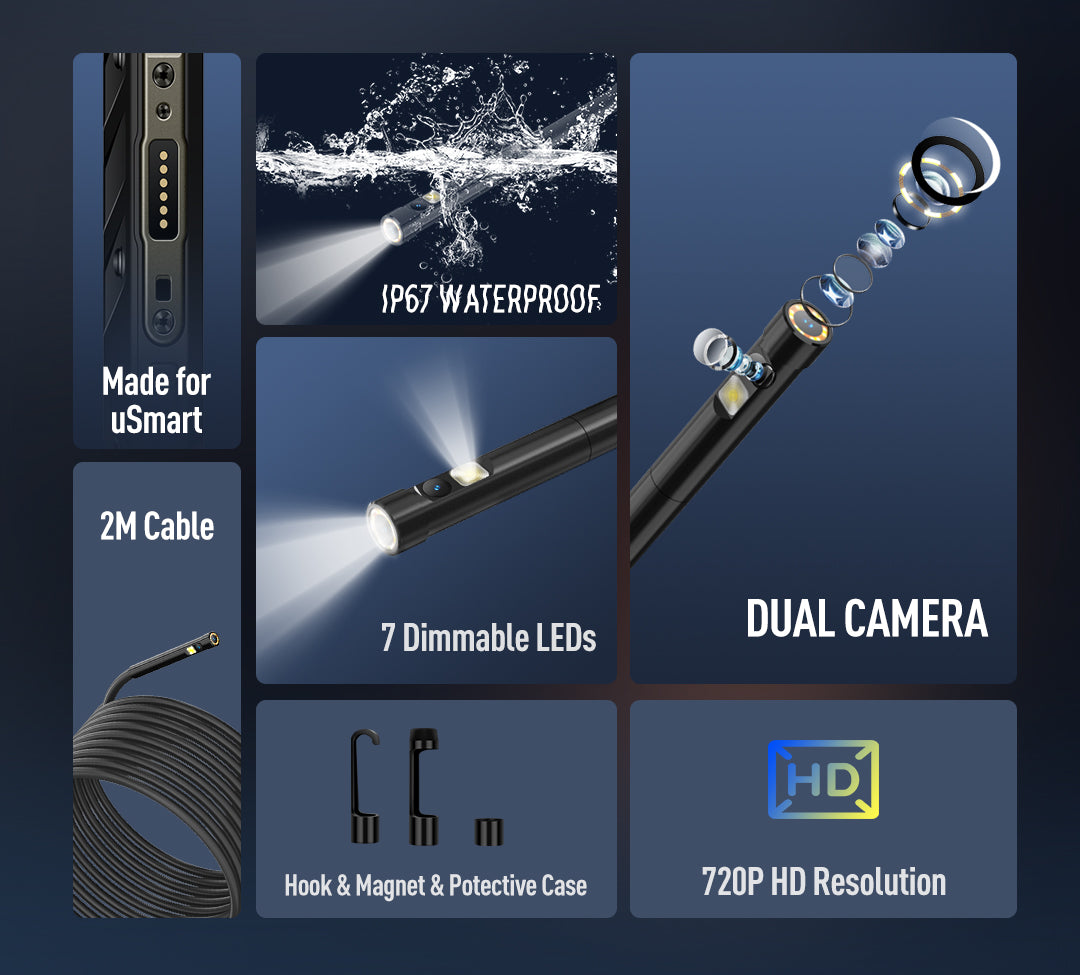 Compatible with more exclusive devices with uSmart Expansion Connector such as Armor 29 Series, Armor 28 Series, Armor 27 Series, Armor 26 Series, Armor 24, Armor 21, Power Armor 19 Series, Power Armor 18 Series, Power Armor 16 Series, Power Armor 13, Armor 9/9E, the endoscope is easy to install and works smoothly with the device.