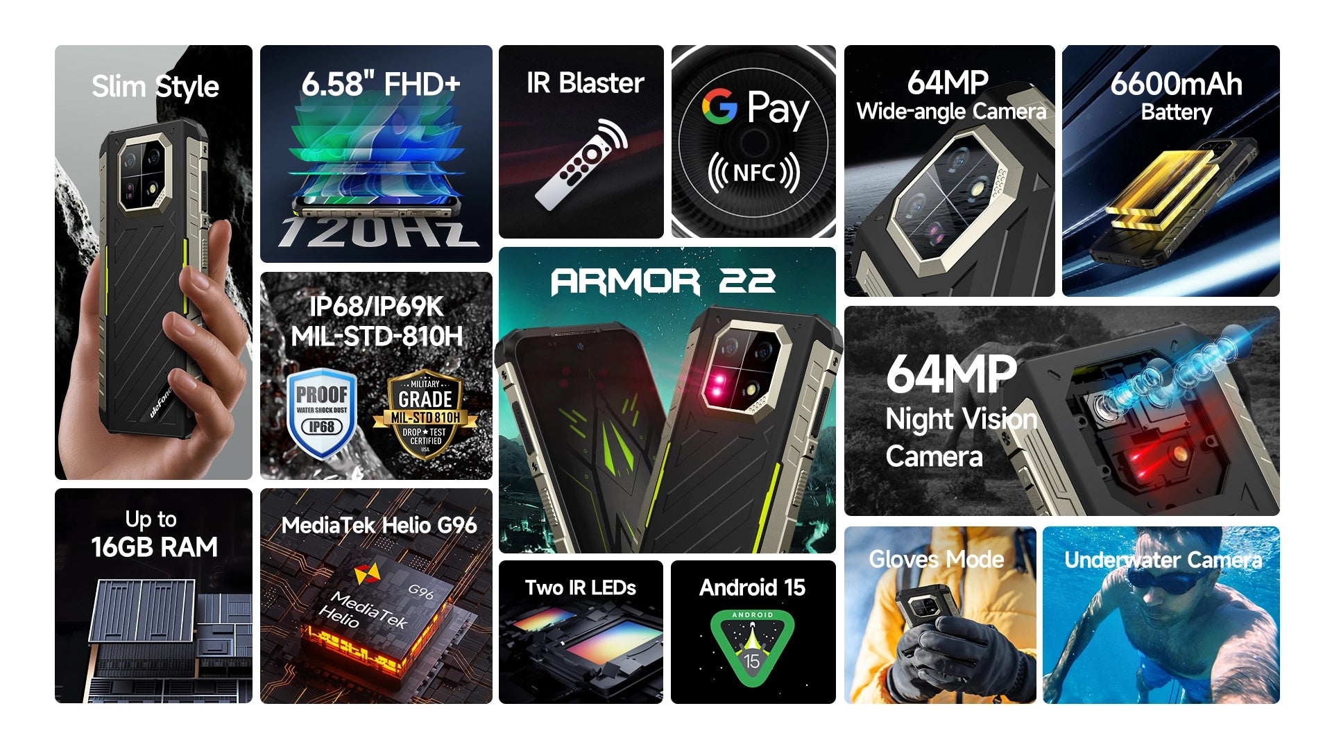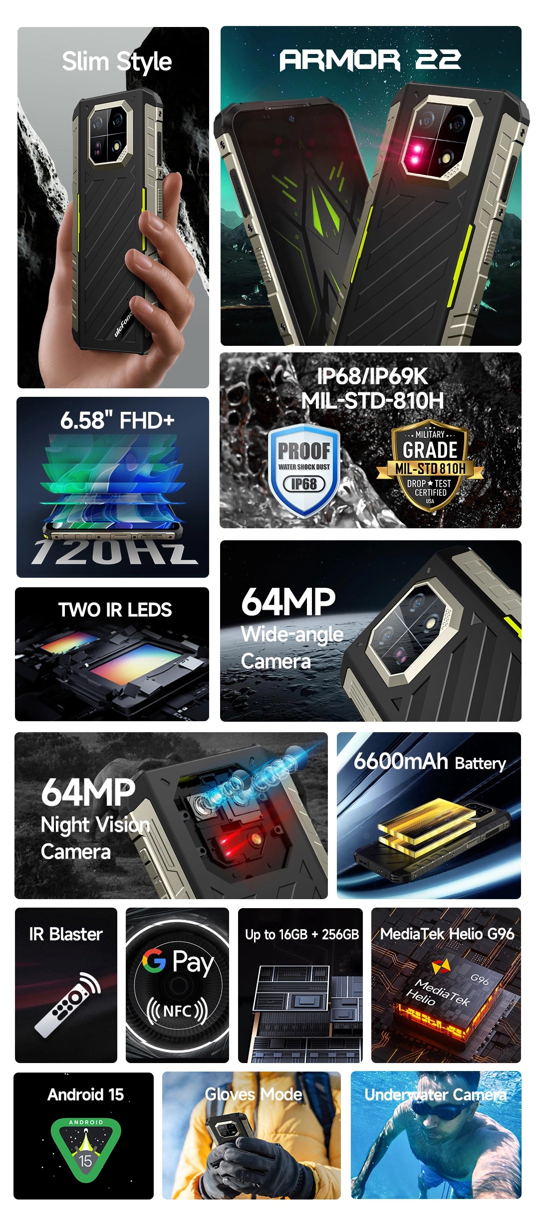 17. Power consumption data are from Ulefone lab, which will be varied by actual usage.