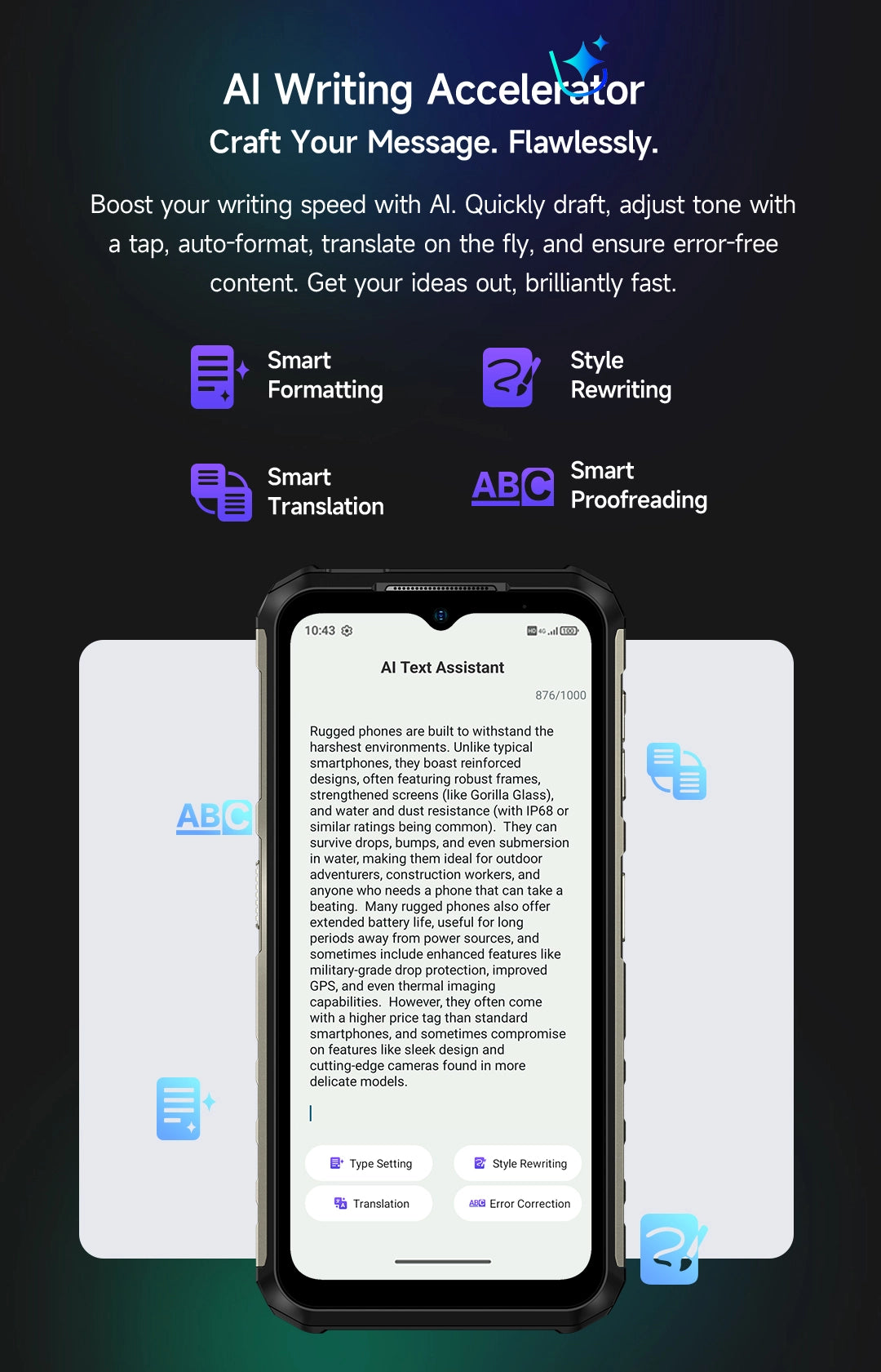 4. Armor 22 has waterproof plugs for its charging port and audio jack, please tightly put the plugs into the holes before you put an Armor 22 into water.