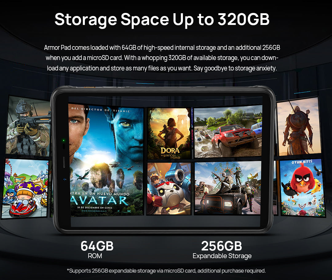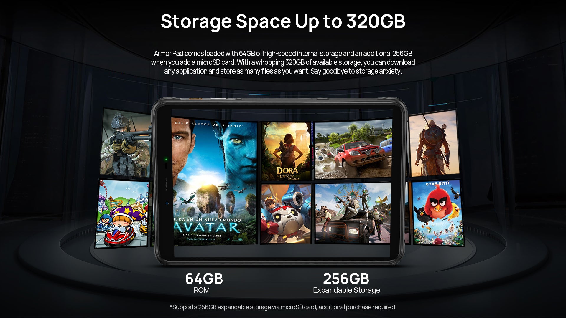 9. Armor Pad supports 256GB expandable storage via microSD card, additional purchase required.